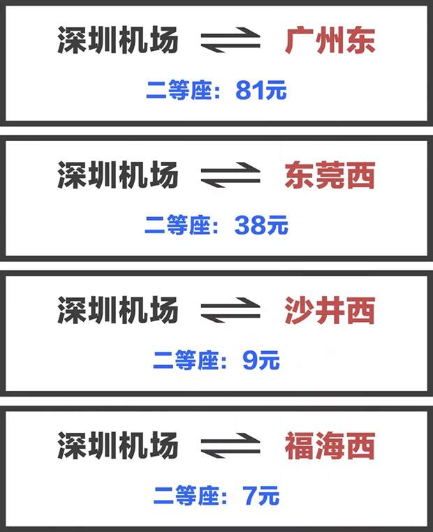 穗深城際鐵路票價(jià)情況。