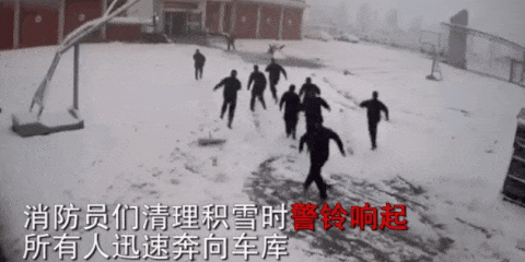 有幾名消防員不小心摔了個“屁股蹲兒”,