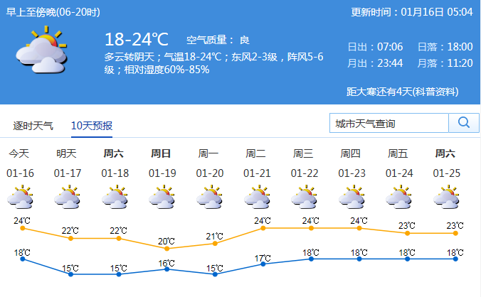 見圳客戶端·深圳新聞網(wǎng)2020年1月16日訊 據(jù)市氣象臺消息,近幾日深圳天氣多云可見陽光,氣溫總體較暖。預(yù)計16日多云間陰天,氣溫18~24 ℃;17日多云,氣溫略降,15~22 ℃;18~22日多云,可見陽光。另外,預(yù)計1月中旬至2月上旬總體偏暖,有間歇性雨霧天氣,共有5次左右冷空氣影響,期間伴隨小雨和7級左右大風(fēng)。