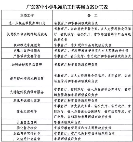 廣東省中小學生減負工作實施方案