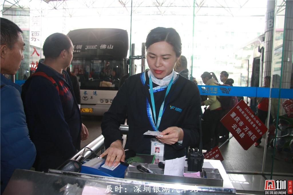 辰時(shí):上午8點(diǎn)55分,銀湖汽車站檢票員吳偉燕正在對(duì)返鄉(xiāng)旅客進(jìn)行檢票。