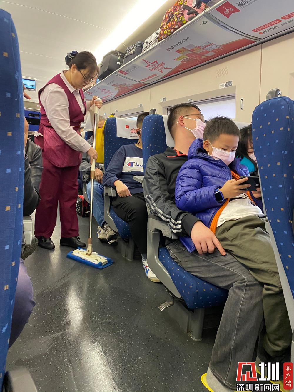 這個姐姐,隔一會兒就過來拖一次地,所以整個車廂都特別干凈!見圳客戶端、深圳新聞網(wǎng)記者 劉婷 攝