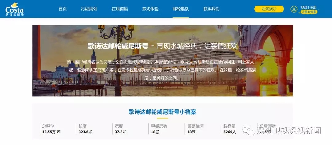 歌詩達郵輪中國官網(wǎng)顯示,威尼斯號郵輪載客量5260人,共2116個房間。