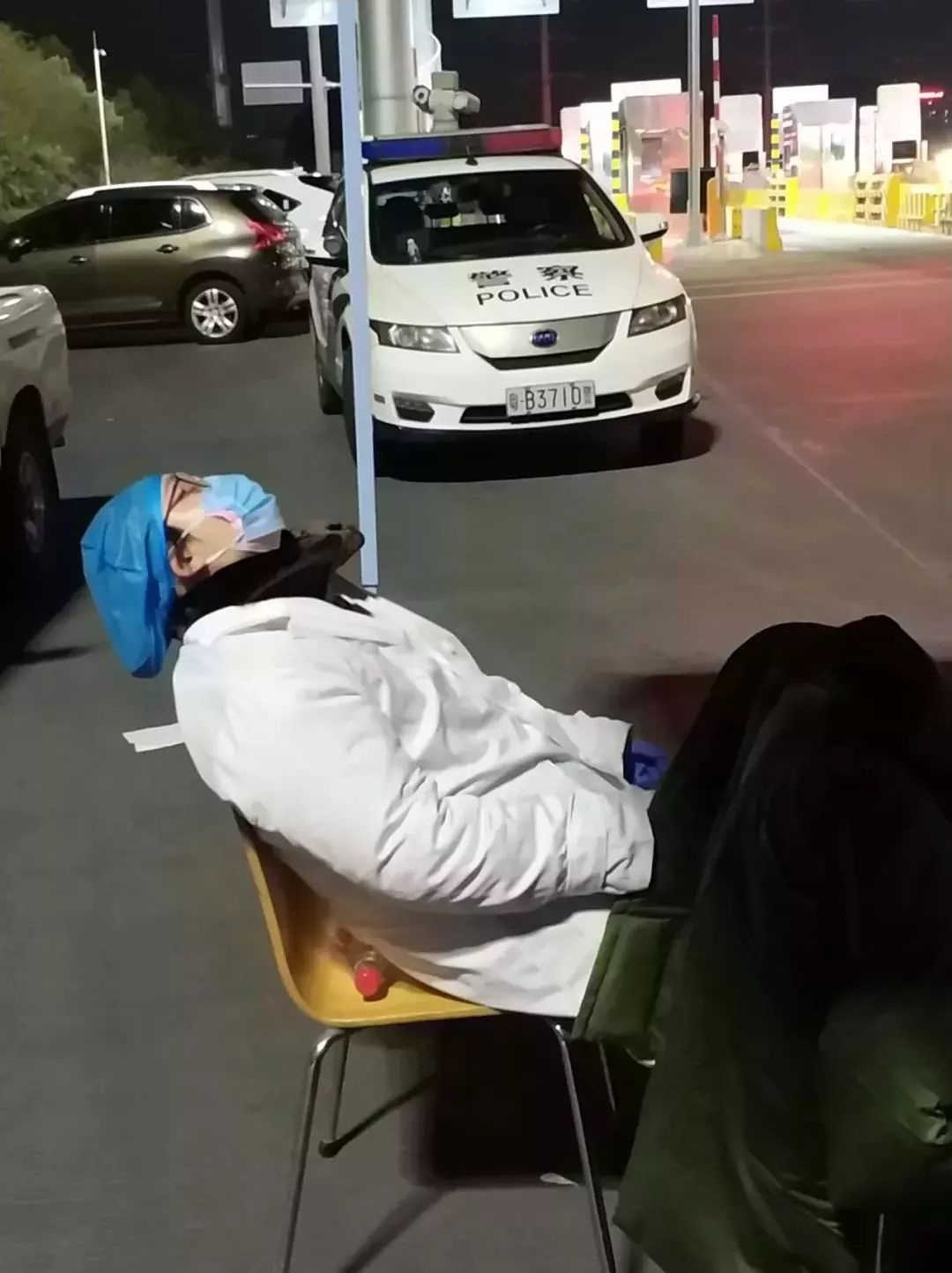 “我們采取輪班制,因高速路口車流量大,除了吃飯喝水,其余時(shí)間都在給返深人員檢測(cè)體溫?!闭掌臄z者陳偉標(biāo)說(shuō)。他也是慢性病防治中心的醫(yī)生,同是這次檢疫一線的醫(yī)務(wù)人員,看到在寒夜中連續(xù)站立工作近7個(gè)小時(shí)的南月麗,疲憊地仰靠在椅子上休息,心中的觸動(dòng)讓他留下了這個(gè)珍貴瞬間,也成了防控疫情一線醫(yī)務(wù)人員的真實(shí)寫照。