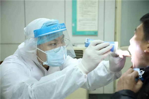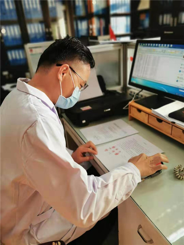消化內(nèi)科苑仁杰醫(yī)生第一時(shí)間請(qǐng)纓到發(fā)診門診上班,這是他正在為發(fā)熱病人診治