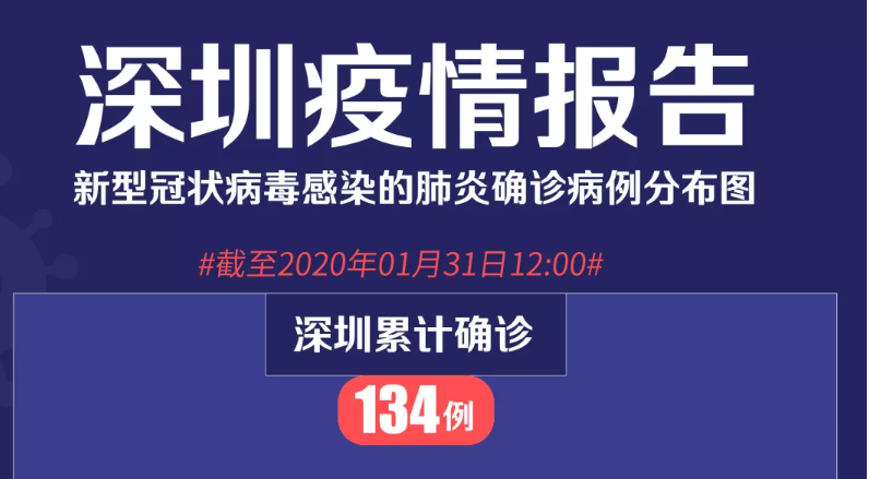 見圳客戶端· 深圳新聞網(wǎng)2020年1月31日訊(見圳客戶端、深圳新聞網(wǎng)記者 劉夢婷)截至1月31日12時,深圳累計確診的“新型肺炎”病例已達(dá)到134例。