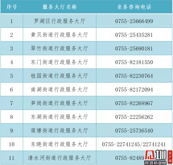 羅湖區(qū)、街道行政服務大廳咨詢電話