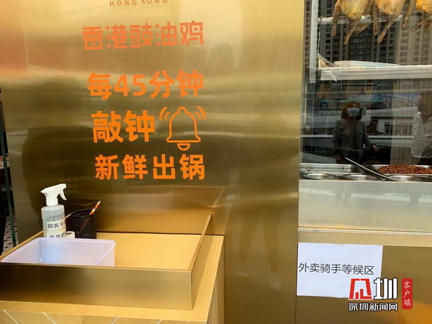 根據(jù)相關(guān)規(guī)定,兩家餐廳門口均設(shè)立預(yù)防區(qū)及外賣騎手區(qū),餐廳配備了體溫測(cè)試儀及消毒酒精,每位到店的顧客或騎手均需進(jìn)行體溫檢測(cè)及消毒,特別是金戈戈豉油雞餐廳更為市民配備了口罩。