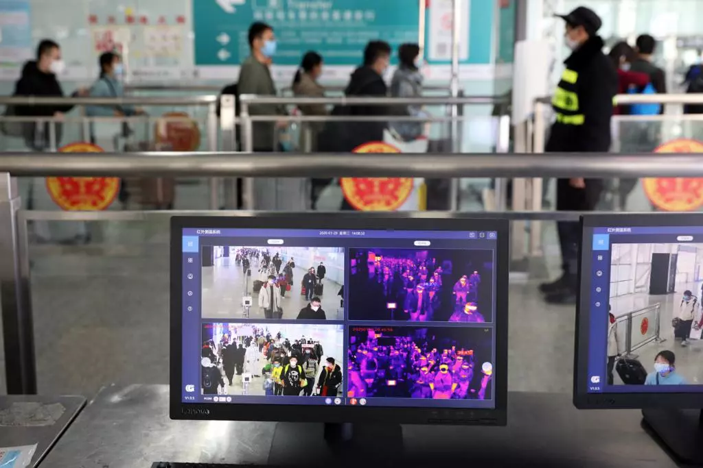 出站旅客的體溫實時顯示在電腦屏幕上,一旦發(fā)現體溫異常人員,系統馬上自動發(fā)出警告。