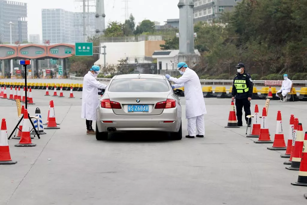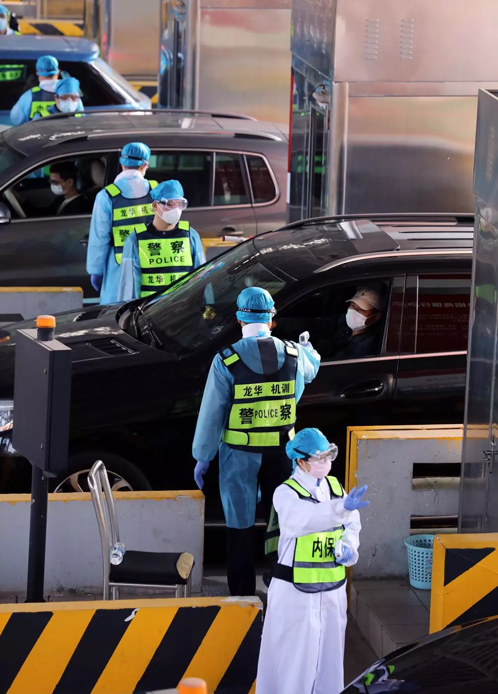 醫(yī)務人員對入深車輛乘員進行二次測溫。