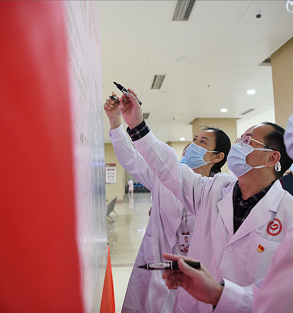 在整個(gè)疫情阻擊戰(zhàn)中,龍崗區(qū)婦幼保健院黨組織自始至終都發(fā)揮著不可替代的先鋒模范作用,在疫情剛開始的時(shí)候,以曹樂勝院長(zhǎng)為首的醫(yī)院黨委就身先士卒緊急行動(dòng)起來迅速投入到抗病毒戰(zhàn)斗中去。院黨委發(fā)出了通知,號(hào)召?gòu)V大員工積極行動(dòng)起來,投身疫情防控第一線,全院人員迅速響應(yīng),截止2月3日,報(bào)名人數(shù)達(dá)369人,其中黨員112人。醫(yī)院組織了部分代表參加的宣誓儀式,大家激情滿懷地舉起右手,莊嚴(yán)承諾:我將堅(jiān)守初心,勇?lián)姑?;無條件服從大局,時(shí)刻準(zhǔn)備著聽候組織調(diào)令;立志沖鋒在前,誓到防疫第一線;我必履職盡責(zé),嚴(yán)守規(guī)范,防護(hù)到位,確保零感染;保證與病毒戰(zhàn)斗到底,不打贏這場(chǎng)硬仗絕不收兵。