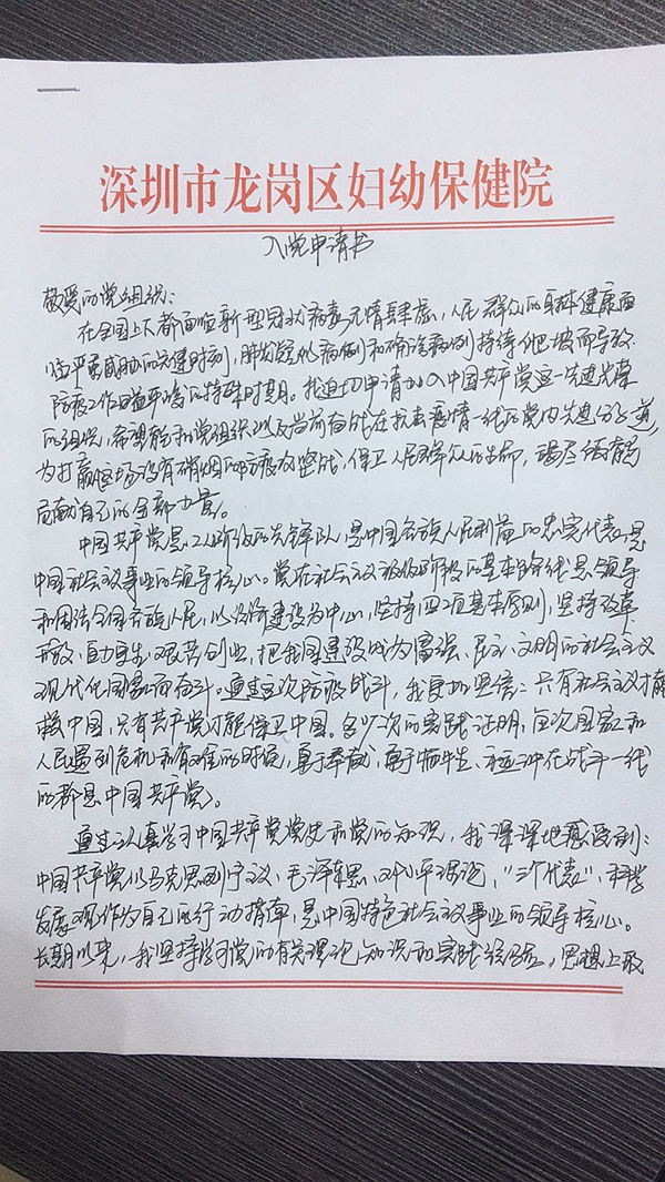 疫情來時(shí),龍崗區(qū)婦幼保健院一醫(yī)生志愿加入中國(guó)共產(chǎn)黨