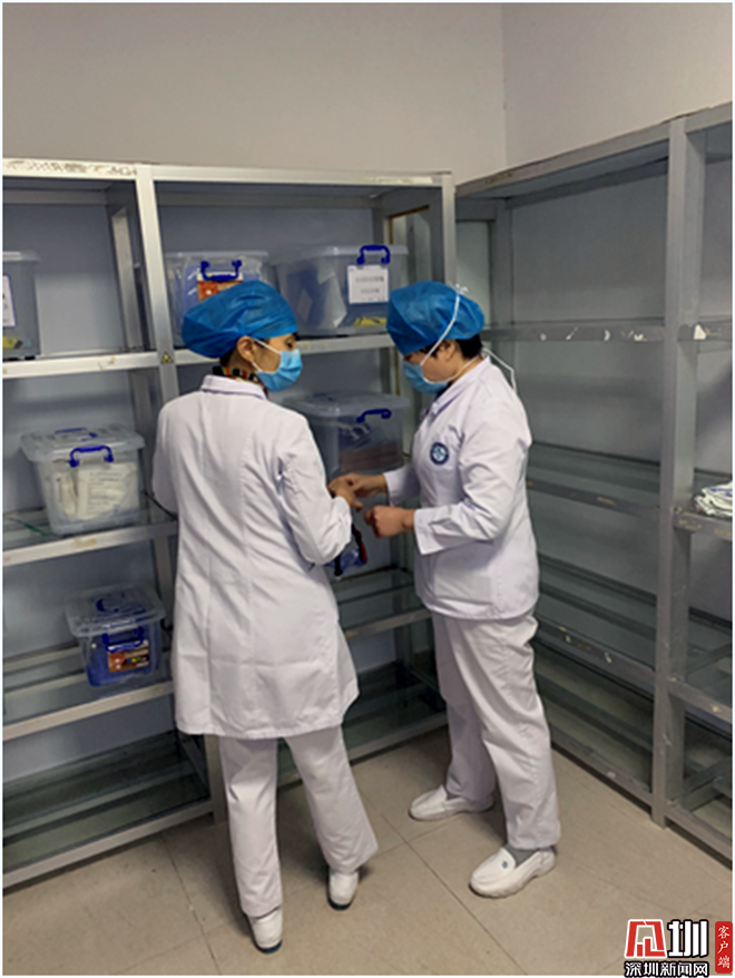 護(hù)理部主任何素蘭與護(hù)士長饒澤珍在發(fā)熱門診整理醫(yī)護(hù)物品