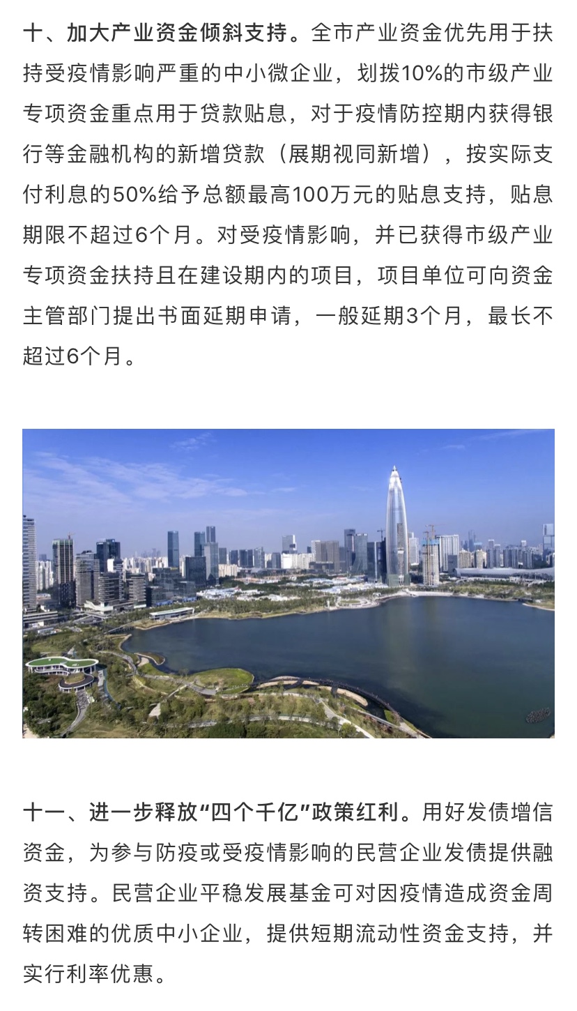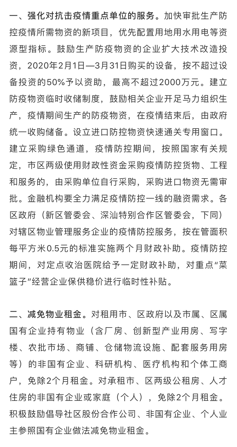 據(jù)了解,為深入貫徹落實習(xí)近平總書記關(guān)于堅決打贏疫情防控阻擊戰(zhàn)的重要指示精神,全面落實黨中央國務(wù)院和省委省政府關(guān)于做好新型冠狀病毒感染的肺炎疫情防控工作的決策部署,在做好防控工作的同時統(tǒng)籌抓好改革發(fā)展穩(wěn)定各項工作,支持企業(yè)共渡難關(guān),保障城市平穩(wěn)運行和經(jīng)濟(jì)穩(wěn)定增長,深圳市政府特制定該工作措施。