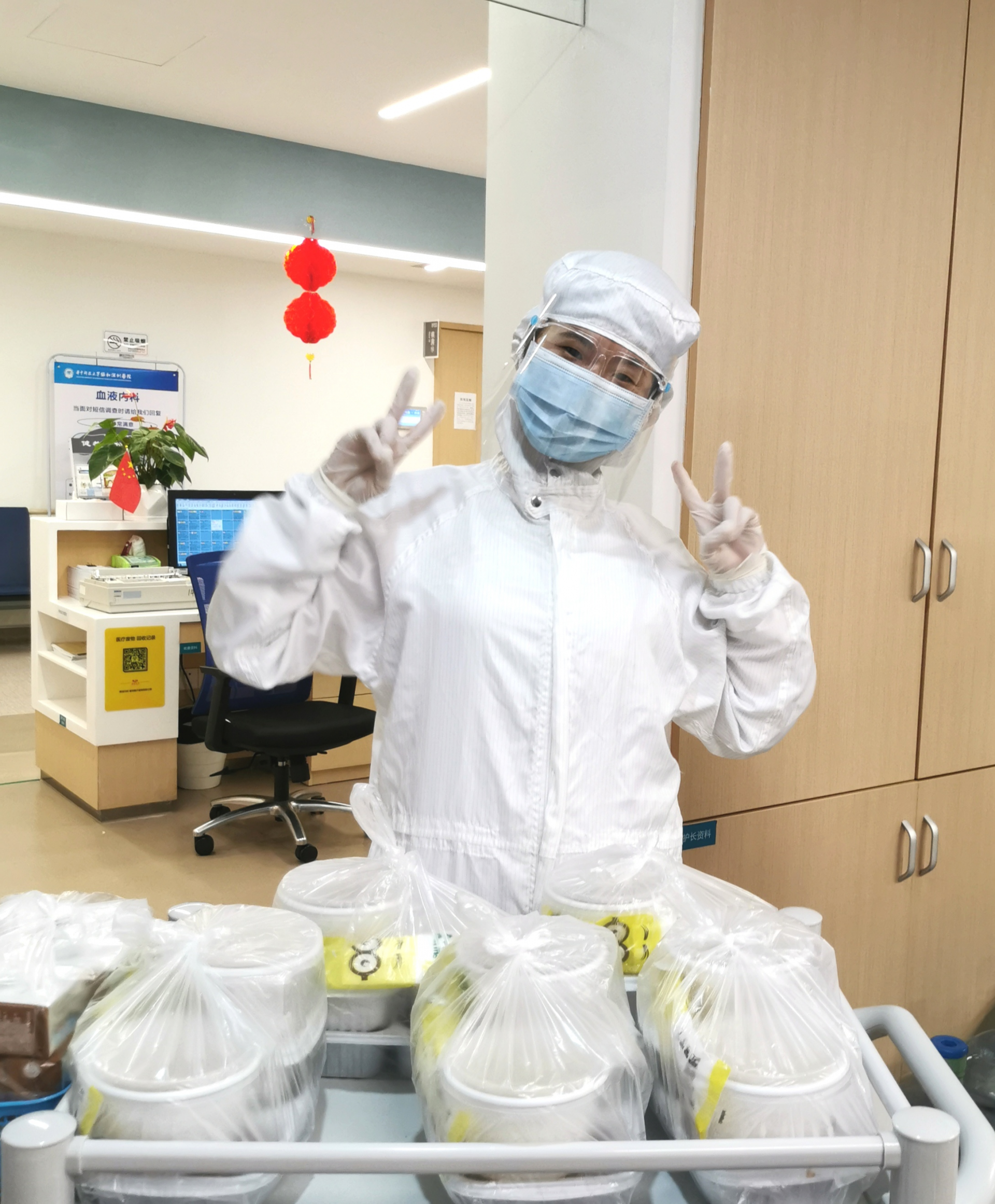 “太感動(dòng)了,超級(jí)暖心!”看到字條后,協(xié)和深圳醫(yī)院感染科護(hù)士長陳燁說,“在這特殊的日子里,很感謝醫(yī)院及膳食科對(duì)我們工作人員提供這么細(xì)心周到的服務(wù),如果不是看到湯圓,大家都不知道今天是元宵節(jié)?!背吮驹旱囊痪€醫(yī)護(hù)人員,鄧啟文院長和莫蓓蓉副院長還特地把湯圓送到協(xié)和深圳醫(yī)院—南方科技大學(xué)醫(yī)院疫情防控的留觀病區(qū),讓那里的值班醫(yī)護(hù)也吃上了熱氣騰騰的湯圓。