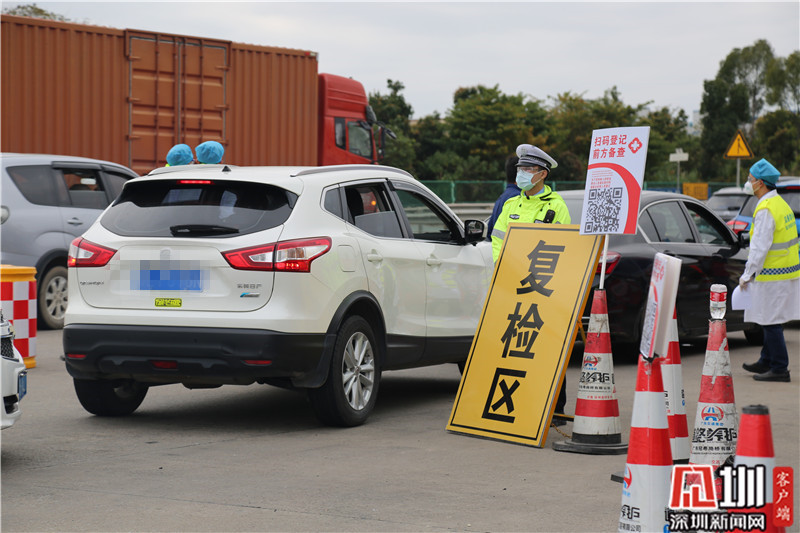 民警李勝仁(右一)在深汕高速龍崗服務區(qū)(金錢坳立交)檢查卡點值守。