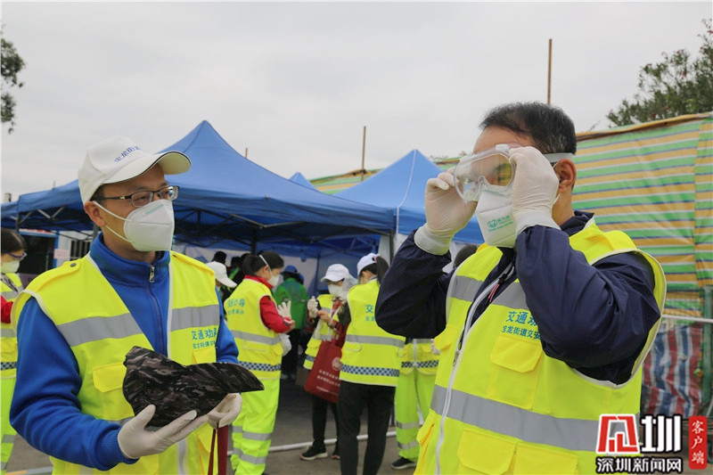 “全副武裝”后,龍崗區(qū)文化廣電旅游體育局局長劉德平(右)準備上一線。