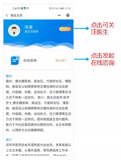 李先生剛利用這個加長版春節(jié)假期學(xué)會了使用微信支付,聽說手機能看診,立刻來了熱情。他按照女兒的指導(dǎo),在微信上搜索并關(guān)注公眾號“深圳羅湖區(qū)人民醫(yī)院”,點擊“醫(yī)院服務(wù)-網(wǎng)上問診”。當(dāng)李先生點擊心內(nèi)科的頁面發(fā)現(xiàn)可進行線上問診的醫(yī)生中有幾位還是曾經(jīng)現(xiàn)場幫他看過病的“熟面孔”時,李先生更加欣喜了?!毙鹿诓《疽咔槠陂g免收線上問診費用,看病僅需支付醫(yī)藥費”,李先生樂了:“沒想到現(xiàn)在看病不用出門,不僅安全,還省錢了呢!”