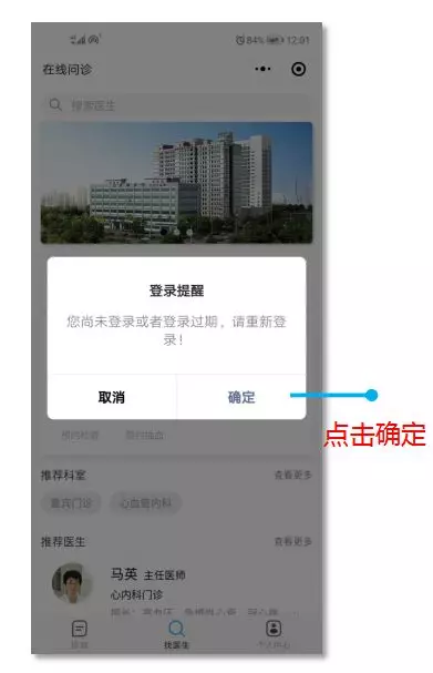 方式一:通過“找醫(yī)生”界面查找醫(yī)生,發(fā)起問診咨詢: