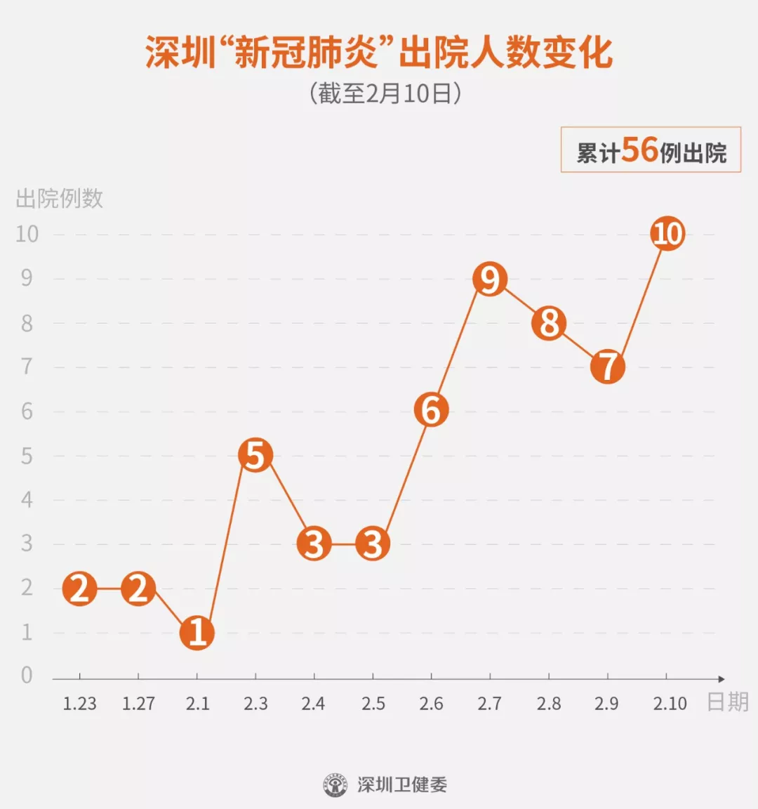 2月10日下午,經(jīng)專家組會診,深圳再有10名新型冠狀病毒肺炎確診患者出院,累計的出院者達56人。