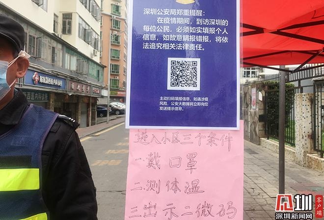 對(duì)于還未登記的市民或者剛返深的市民,該執(zhí)勤人員表示,他們可現(xiàn)場(chǎng)掃描二維碼,填報(bào)真實(shí)信息即可立即生成驗(yàn)證二維碼。“凡是進(jìn)出人員,必須同時(shí)滿足三個(gè)條件:戴口罩、測(cè)體溫、出示二維碼,我們才放進(jìn)來?!痹搱?zhí)勤人員一邊檢查進(jìn)出人員信息,一邊向現(xiàn)場(chǎng)居民宣傳。(見圳客戶端、深圳新聞網(wǎng)記者 潘峰)