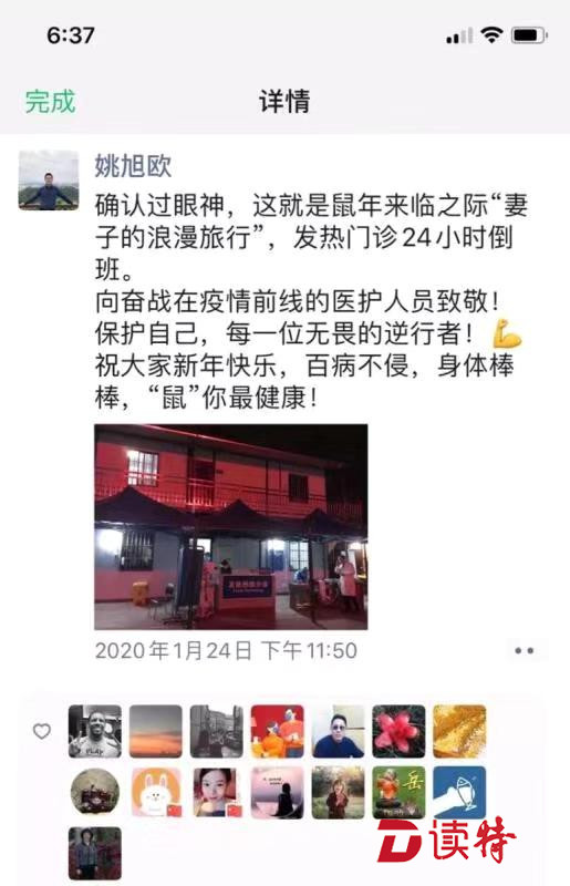 丘宇和姚旭歐兩人都是戰(zhàn)疫一線的衛(wèi)健系統(tǒng)雙職工,他們把對對方的關(guān)懷和愛意,在朋友圈表達(dá)得浪漫而動(dòng)人。
