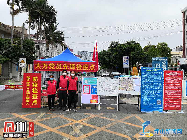 來(lái)自龍崗區(qū)南嶺村的鄧育芳,是不少租戶的房東,也是值守在南嶺南路黨員先鋒崗的一名村民志愿者。連續(xù)十多天,她每天在村口站立整整7個(gè)小時(shí),不停為出入居民測(cè)量體溫、詢問(wèn)來(lái)源地、查驗(yàn)申報(bào)二維碼、引導(dǎo)注冊(cè)。
