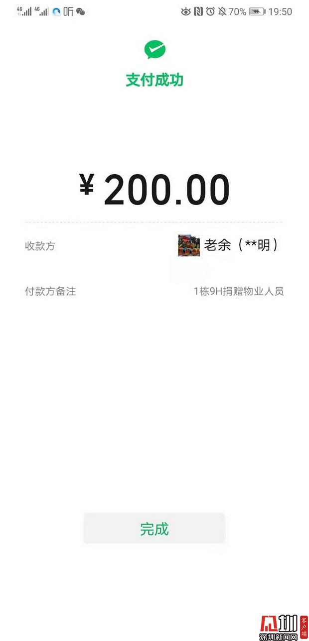近日,一直忙于新冠肺炎疫情防控工作的南山區(qū)沙河街道深圳市龍城物業(yè)管理有限公司深云村物業(yè)服務中心的員工們被一則消息感動了:小區(qū)居民因有感于他們在防疫工作中的辛勤付出,紛紛以“打賞”的方式表達謝意。