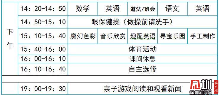 網(wǎng)課的課程表和正式上課的課程表還是有所不同的。比如福田區(qū)景蓮小學(xué)的課程表是全校統(tǒng)一,上午下午各有2節(jié)課,每節(jié)40分鐘(老師講課15分鐘,學(xué)生自己線下做課堂練習(xí)25分鐘)。該校二年級(jí)今天上的科學(xué)課和音樂(lè)課就緊扣新冠肺炎疫情防控,科學(xué)課用動(dòng)畫(huà)視頻講解新冠病毒的原理,并請(qǐng)小朋友自己畫(huà)一幅新冠病毒的圖;音樂(lè)課則是播放教唱《加油歌》《奉獻(xiàn)》,向疫情防控的逆行勇士致敬。