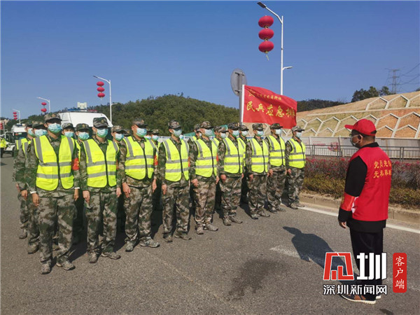 見圳客戶端·深圳新聞網(wǎng)2020年2月17日訊(見圳客戶端、深圳新聞網(wǎng)記者黃琬婷 通訊員羅國都)在龍崗大道坪地六聯(lián)市際檢查站,一排綠色身影煞是醒目。他們是龍崗街道民兵“突擊隊(duì)”,他們的任務(wù)是守住深圳北大門疫情防控的第一道防線。接到上級(jí)部門的指令后,立即集結(jié)隊(duì)伍,“疫情就是命令,防控就是責(zé)任”。于1月27日晚上10點(diǎn)準(zhǔn)時(shí)接管六聯(lián)檢查點(diǎn)聯(lián)防聯(lián)控工作,奮戰(zhàn)在疫情防控第一線。在疫情防控這個(gè)特殊的戰(zhàn)場(chǎng)上,他們都是“最美的逆行者”。