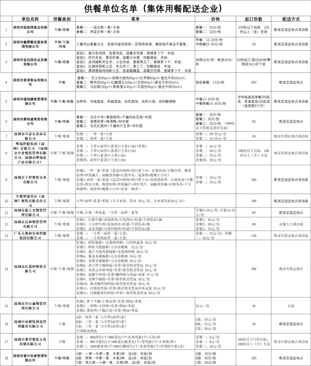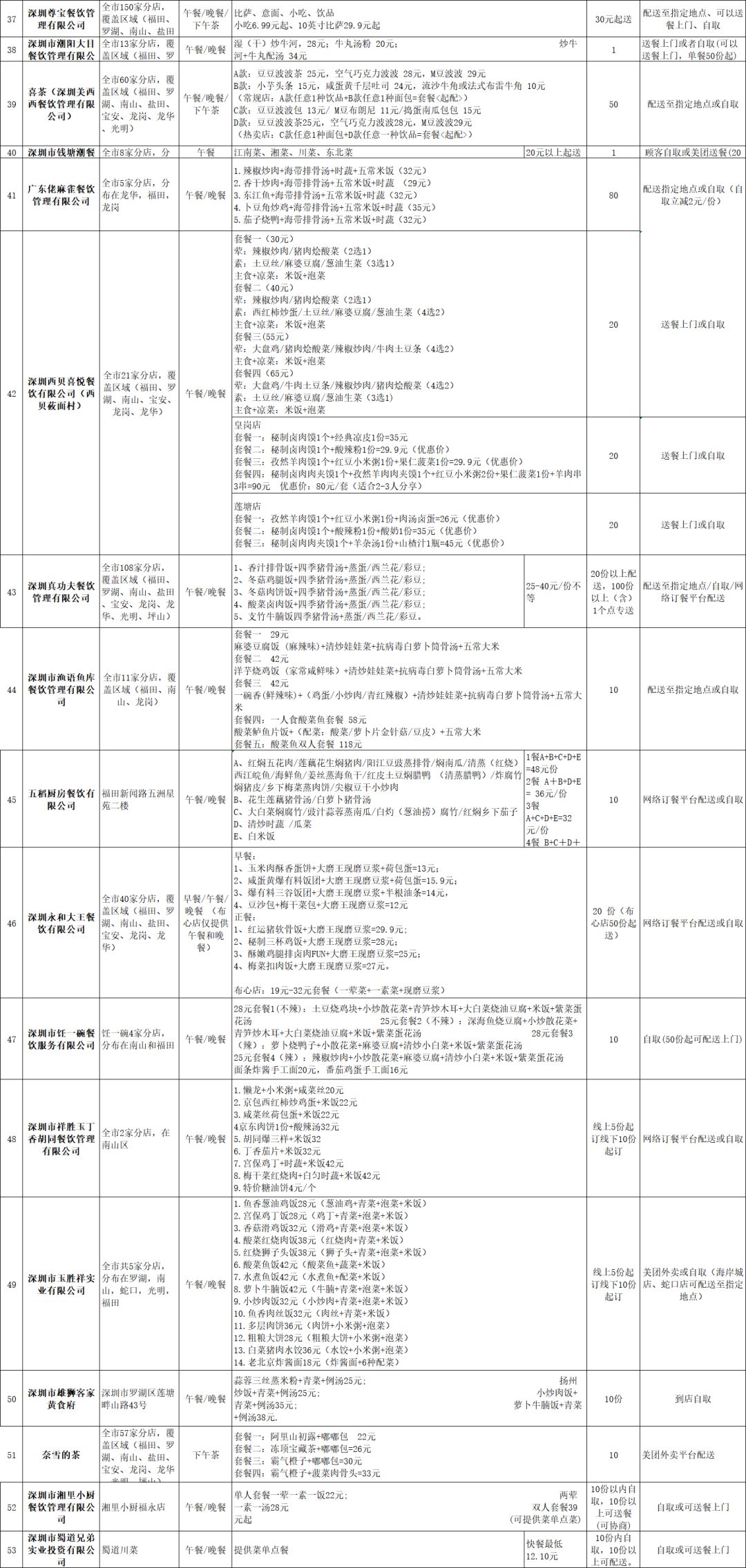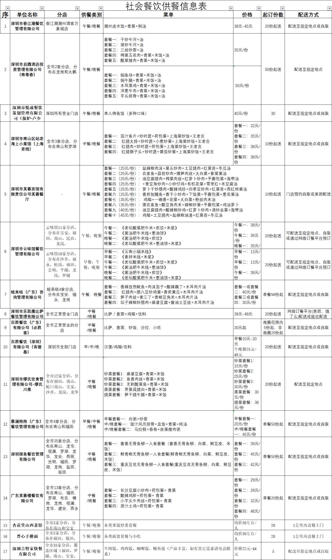 復(fù)工吃飯難?深圳公布79家可提供配送服務(wù)餐飲企業(yè)!附最全名單