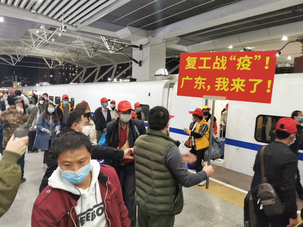 目前,在全省上下全力抗擊新冠肺炎疫情的同時,廣東各類企業(yè)已陸續(xù)復(fù)工復(fù)產(chǎn)。針對節(jié)后部分務(wù)工人員返程難、部分企業(yè)用工難的問題,廣東省人社部門在全面落實(shí)省委省政府疫情防控決策部署的前提下,主動加強(qiáng)與勞務(wù)輸出省份溝通對接,對疫情相對平穩(wěn)、來粵就業(yè)人員相對集中的云南、四川等部分省份,聯(lián)合當(dāng)?shù)厝松绮块T共同組織開行“點(diǎn)對點(diǎn)”返粵返崗專列,為務(wù)工人員提供全流程的返崗對接服務(wù)。據(jù)悉,在本趟列車開行前,廣東省人社部門根據(jù)重點(diǎn)企業(yè)和項(xiàng)目復(fù)工復(fù)產(chǎn)安排,向云南省人社部門提供不同時段的企業(yè)空缺崗位共11萬個,由當(dāng)?shù)厝松绮块T按需組織發(fā)動務(wù)工人員并開展集中健康檢測,出具健康證明;途中,云南人社部門會同鐵路部門,共同落實(shí)好務(wù)工人員進(jìn)站、候車、乘車、出站等環(huán)節(jié)的疫情防控和客運(yùn)服務(wù)等措施,確保復(fù)工人員安全、有序、溫馨出行;到粵后,廣東人社部門提供專車將務(wù)工人員接駁至企業(yè),幫助企業(yè)做好疫情期間員工組織接收、上崗復(fù)工等準(zhǔn)備工作。廣東省人社廳相關(guān)工作人員表示:“今年受疫情影響,節(jié)后短期缺工現(xiàn)象比往年更為突出。特殊情況需要特別舉措,除了讓務(wù)工者免費(fèi)乘坐返崗專列,我們還為一些去汕頭、陽江等較遠(yuǎn)地區(qū)企業(yè)而沒法當(dāng)天到達(dá)的零散務(wù)工者,貼心地提供免費(fèi)住宿,還買好次日去企業(yè)所在地的車票,送他們上車,并對接當(dāng)?shù)厝松绮块T安排車輛接駁至廠。我們通過這種‘一條龍’無縫對接服務(wù),既滿足企業(yè)復(fù)產(chǎn)的用工需求,又降低返程運(yùn)輸?shù)囊咔閭鞑ワL(fēng)險”。