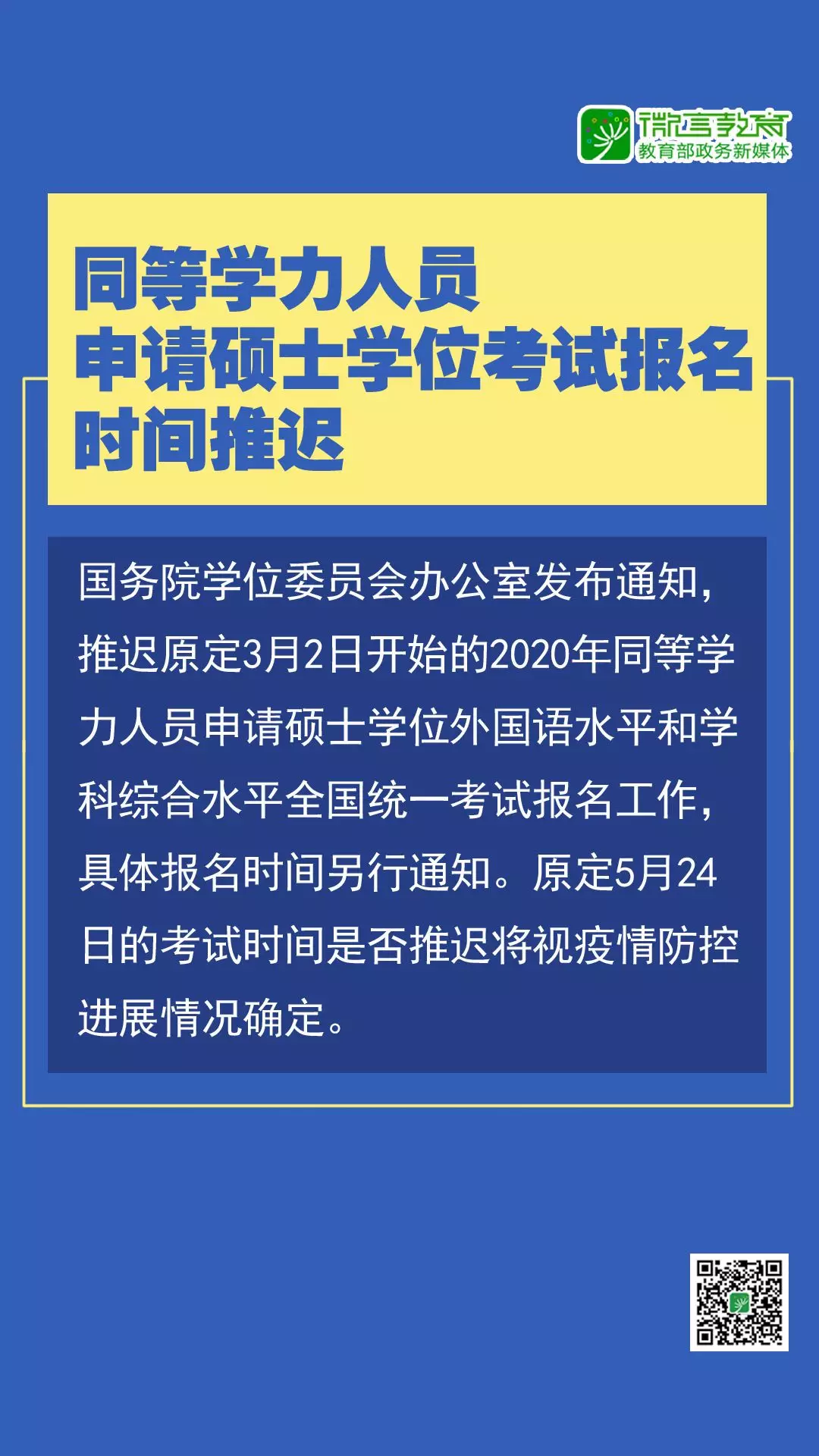 注意啦!研究生、中小學教資、全國英語等級等考試推遲