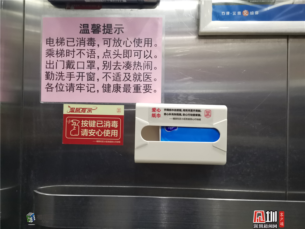 除了落實“五個100%”、“十個一律”等社區(qū)聯(lián)防聯(lián)控硬核舉措外,福田區(qū)安心行動細(xì)微之處見真章,工作人員模擬小區(qū)居民,從出家門開始到小區(qū)門口,所必經(jīng)的區(qū)域進(jìn)行實地感受,督促配合物業(yè)對小區(qū)防火門、電梯內(nèi)外、樓道、樓梯扶手、大門把手、公共座椅等公用設(shè)施每日消毒并公示記錄,電梯間統(tǒng)一設(shè)置按鍵公用紙及紙巾回收處等一些小細(xì)節(jié),讓居民能看見實實在在的防疫措施而感到放心、安心。