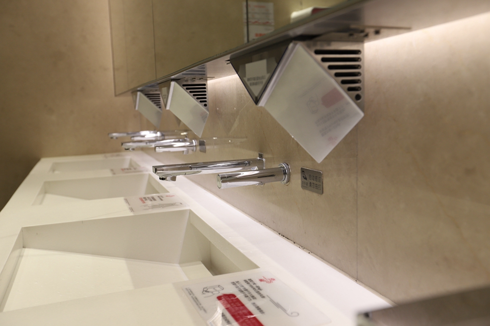 在一樓洗手間記者看到,洗手臺(tái)一側(cè)安置了消毒設(shè)備,并張貼使用提示。據(jù)悉,除了上述防疫物資,壹方城還采購(gòu)了醫(yī)用手套、防護(hù)服、護(hù)目鏡以及消毒噴霧機(jī)3臺(tái)等,在所有出入口新增自動(dòng)消毒設(shè)備55臺(tái),在洗手間配置消毒設(shè)備186臺(tái)。
