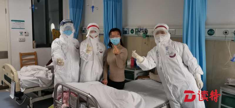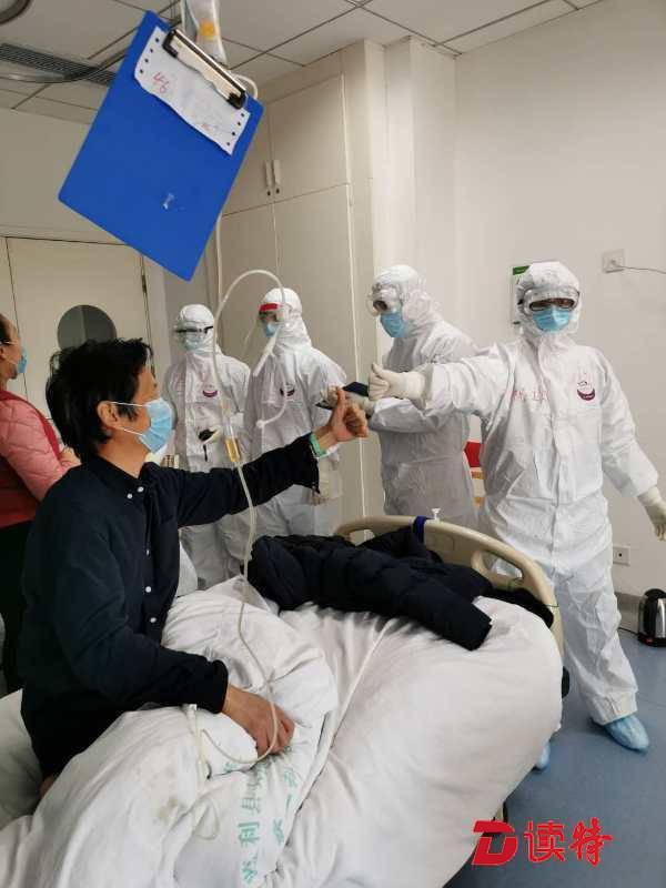 深圳醫(yī)療隊(duì)員與患者合影,互相鼓勵(lì)。