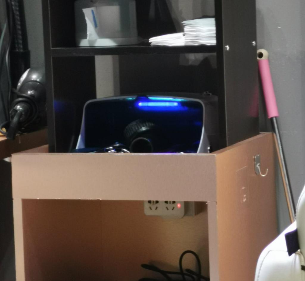 ▲理發(fā)師隨時(shí)將工具放于紫外線消毒柜內(nèi)消殺。