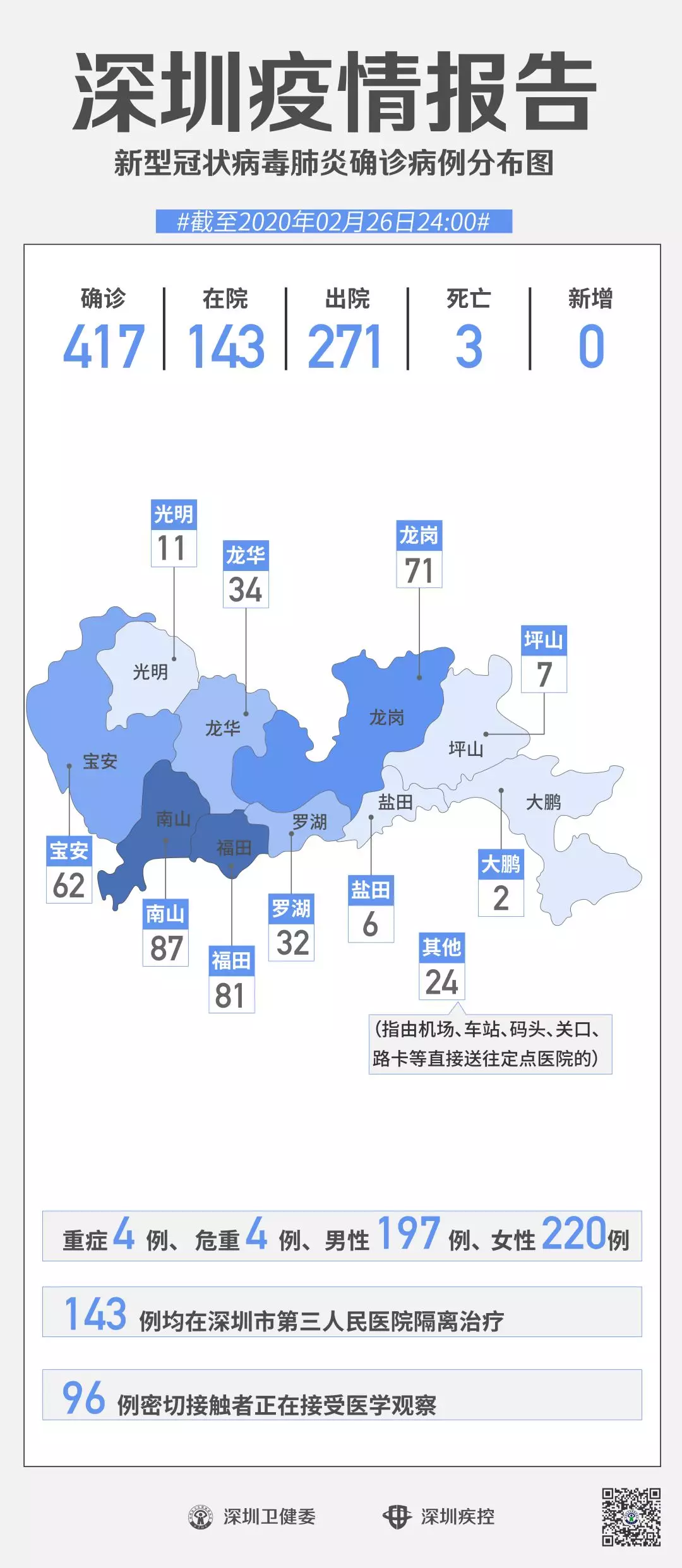 深圳連續(xù)5日零新增!累計417例,在院143例(截至2月26日)