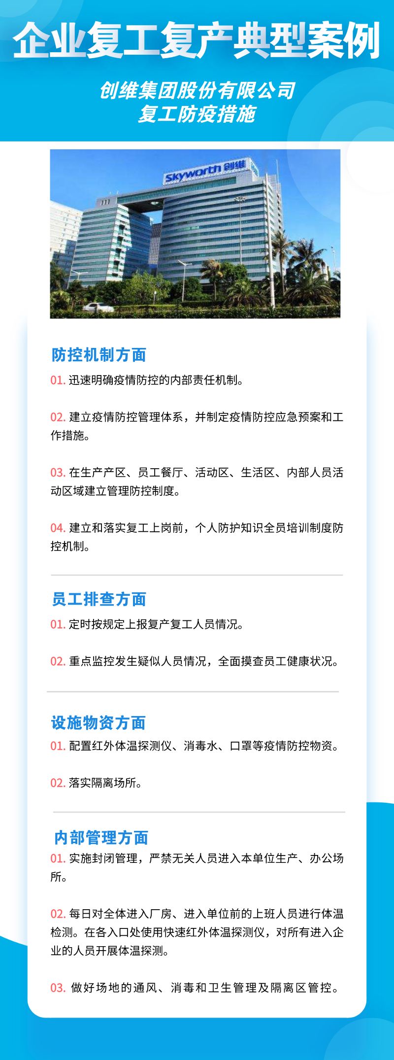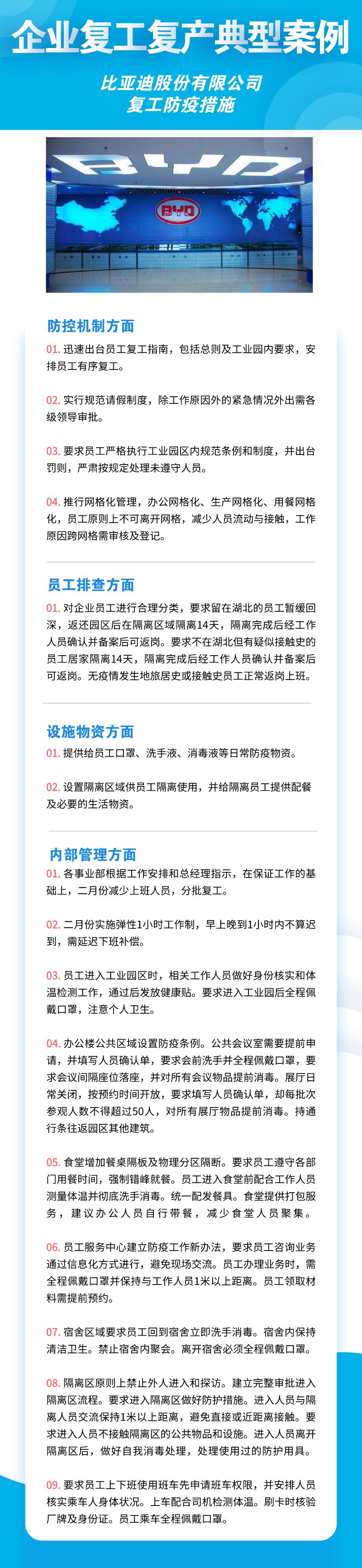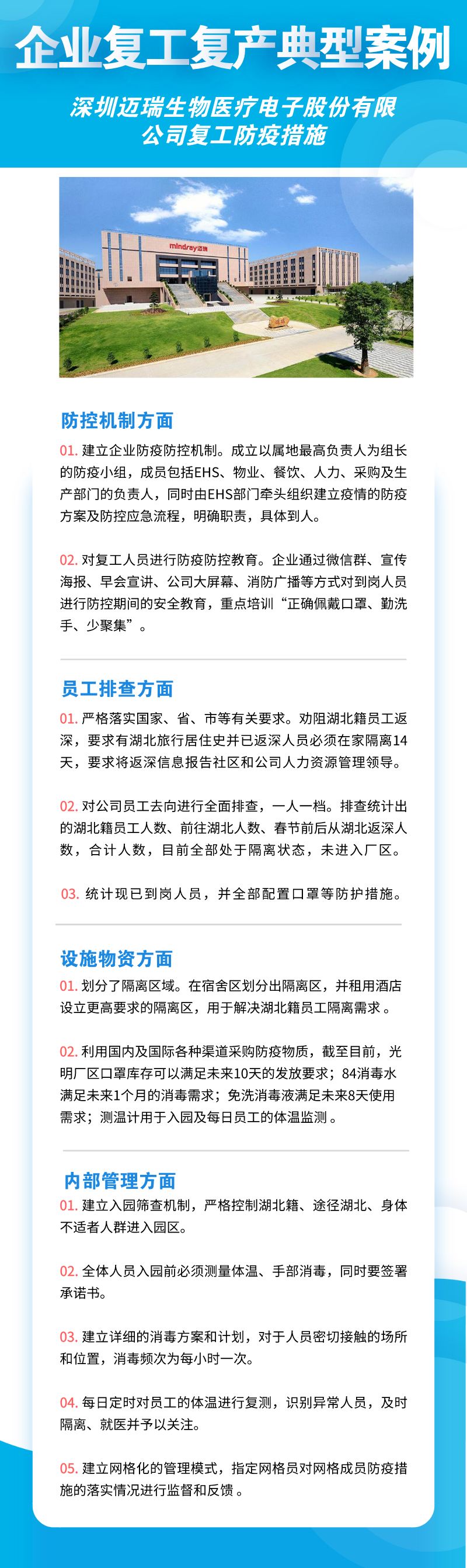 深圳市華為技術(shù)有限公司、聯(lián)想系統(tǒng)集成(深圳)有限公司、深南電路股份有限公司、比亞迪股份有限公司、創(chuàng)維集團股份有限公司等8家公司,從防控機制、員工排查、設(shè)施物資、內(nèi)部管理四個方面來落實疫情防控措施,包括成立企業(yè)疫情防控小組、建立企業(yè)防控機制、提升員工防控意識、劃分隔離區(qū)域、宿舍食堂等區(qū)域消殺等舉措。