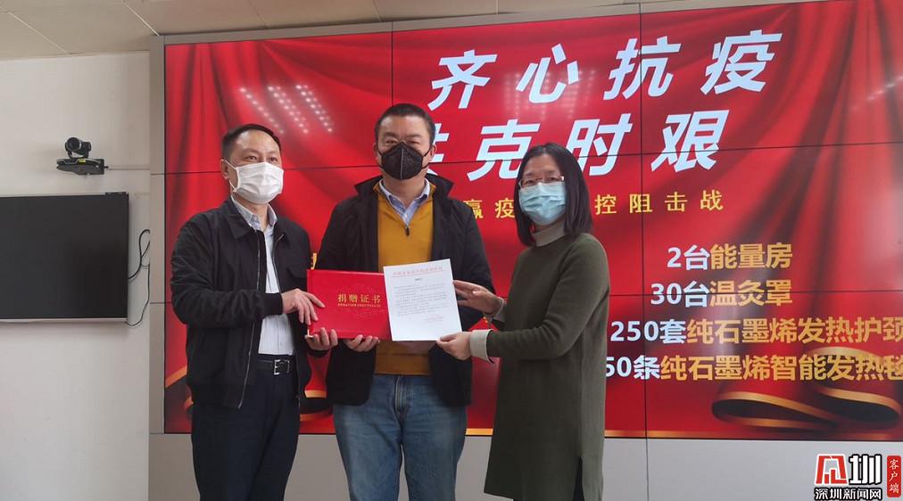 大"疫"當前,烯旺科技積極履行社會責任,向深圳市龍崗區(qū)衛(wèi)生健康局捐贈防疫物資:石墨烯能量房兩臺,石墨烯溫灸罩30臺,護頸250套,小毛毯150條,共價值80萬元,用于支援全區(qū)的醫(yī)護人員疫情防控工作。