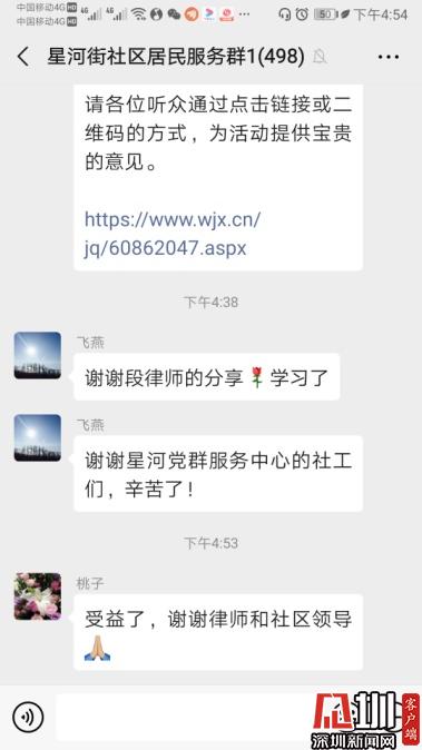 講座還未開始,廣大居民已在線上等待。看到一些居民不太熟悉線上操作,社區(qū)的網(wǎng)格員們紛紛自發(fā)行動,充當(dāng)起各居民群里的網(wǎng)絡(luò)專家,為大家答疑解惑。本次講座主要涉及家庭暴力的立法、執(zhí)行和救濟(jì)等法律問題。段律師以最近網(wǎng)絡(luò)上廣泛關(guān)注的“美妝博主宇芽被家暴”的案例為切入點(diǎn),通過分析家庭暴力案件的相關(guān)數(shù)據(jù),闡釋了我國《反家庭暴力法》的立法背景以及實施的現(xiàn)狀,并為大家講解在生活中遇到家庭暴力時如何通過法律手段維權(quán),受到大家的一致好評。本次講座收聽人數(shù)達(dá)1500人次,課后大家仍然熱情不減,繼續(xù)在線上相互溝通交流家庭暴力問題。