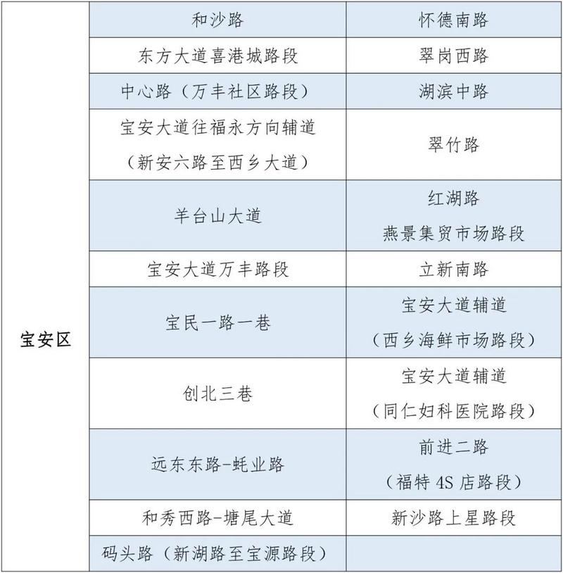 此外,根據(jù)市民反映的信息,深圳交警進(jìn)行實地走訪、勘查,決定再增設(shè)20條路段作為疫情期間臨時停車區(qū)。截至2020年3月3日,深圳交警共在全市171條路段做為疫情期間道路臨時停車區(qū),具體設(shè)置路段如下: