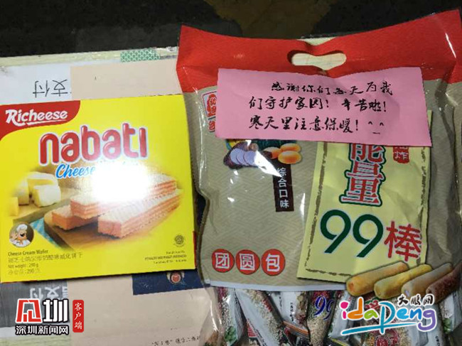 2月18日晚上,一輛奔馳車停在歐新擔水南卡點,車上下來一名女士,放下一大包零食,說了句“辛苦了”轉身就走了……零食上還貼著一張便條:“感謝你們每天為我們守護家園!辛苦啦!寒天里注意保暖!”