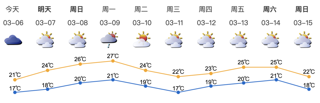 預(yù)計7-9日可見陽光,早晚有輕霧;