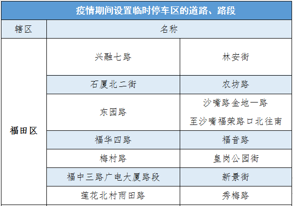 經(jīng)綜合考慮,深圳交警決定撤銷上述三個(gè)車輛臨時(shí)停放路段,截至2020年3月6日,深圳交警共在全市170條路段,做為疫情期間道路臨時(shí)停車區(qū),具體設(shè)置路段請(qǐng)看表格。