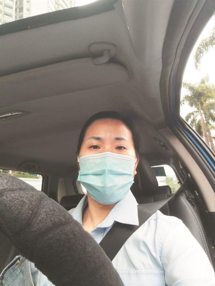 史美娟今年50歲,河南人,9年前隨丈夫來深,當(dāng)起了出租車司機(jī),一直干到現(xiàn)在。兩三年前,丈夫回老家忙生意,平時就由她一人照顧女兒。母女倆關(guān)系親近,疫情發(fā)生后,女兒每天準(zhǔn)備好酒精,守在家門口等她下班回家?!皨?,轉(zhuǎn)一圈,我給你消毒!”史美娟卻難免有些擔(dān)心。每次她都匆匆接過酒精,讓女兒離自己遠(yuǎn)一點。家里老人也害怕,不同意史美娟出車。但史美娟始終堅持在一線營運。每天早上開車前,史美娟會先將全車消毒一遍,戴上雙層口罩,開車時打開四個窗戶,保持通風(fēng)。每位乘客下車后,史美娟都會再噴一遍消毒液,遇上現(xiàn)金支付的,還要注意用酒精消毒接過錢的手套。除了公司每日發(fā)放的口罩,她還給乘客多準(zhǔn)備了幾份,不過疫情以來她幾乎沒有碰到過不戴口罩的乘客。