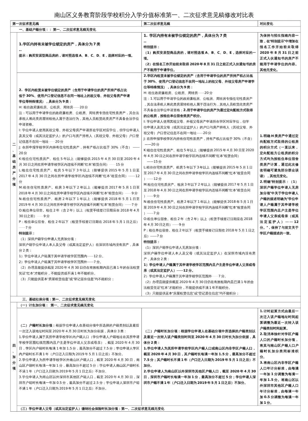 1月19日,南山區(qū)教育局第一次征求意見發(fā)出后,共收集到關(guān)于積分算法調(diào)整的反饋意見182條,并于2月10日第二次發(fā)布《南山區(qū)義務(wù)教育階段公布學(xué)校積分入學(xué)實施辦法》征求意見稿(以下簡稱《意見》),根據(jù)《意見》內(nèi)容,擬調(diào)整2020年積分入學(xué)辦法。
