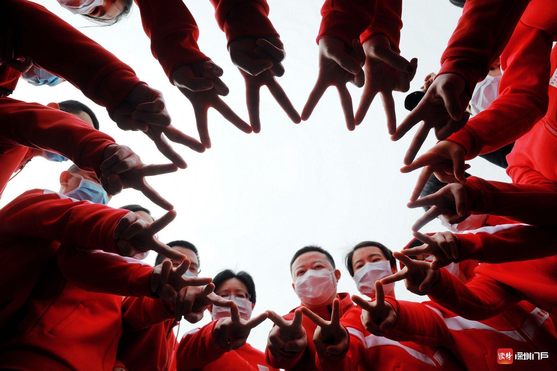 3月9日,監(jiān)利終于成功實(shí)現(xiàn)新冠肺炎確診和疑似患者“雙清零”。第二天,天氣放晴,深圳醫(yī)療隊(duì)就全員脫下了深藍(lán)色的羽絨服,換上了大紅色的運(yùn)動(dòng)服。顯然這是一種有意的安排,盡管他們沒(méi)有跟任何人解釋?zhuān)ㄓ浾咴趦?nèi),所有人都能猜到他們換這身衣服的原因。