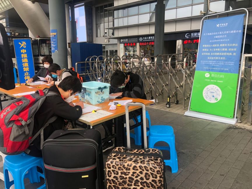 深圳灣口岸出入境旅客都在認真填寫健康申報卡