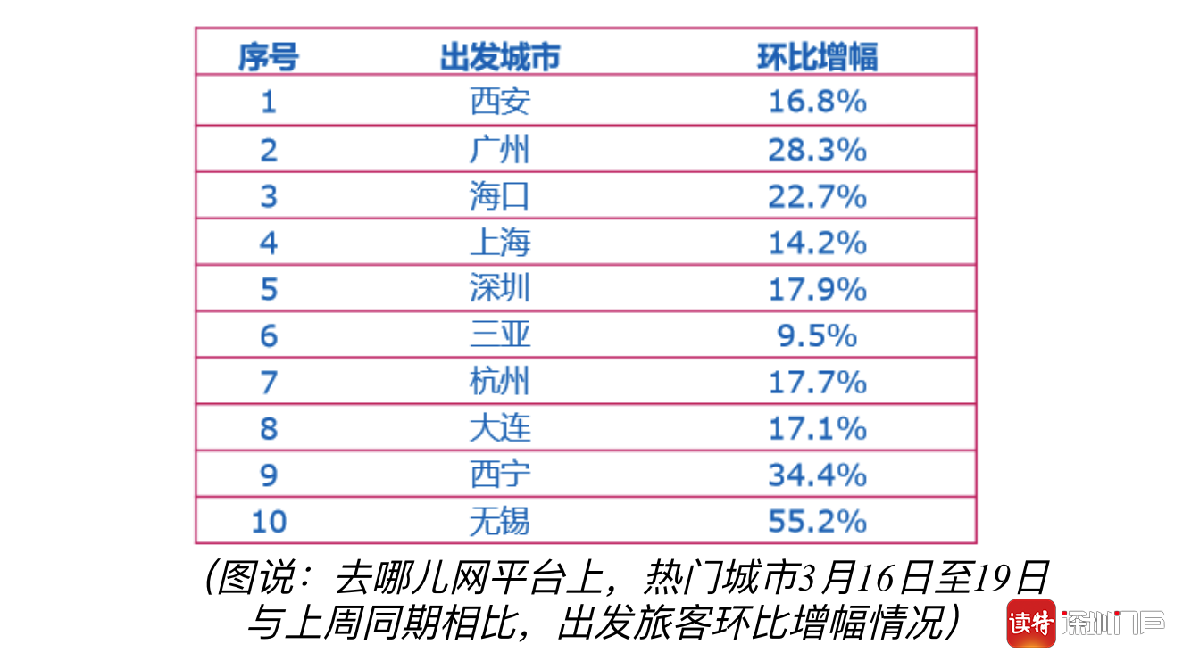 深圳特區(qū)報2020年3月19日訊 進入3月中旬,隨著各地有序復(fù)工復(fù)產(chǎn),旅游行業(yè)也出現(xiàn)回暖跡象。去哪兒網(wǎng)數(shù)據(jù)顯示,本周五一假期搜索量環(huán)比上周增長76%。